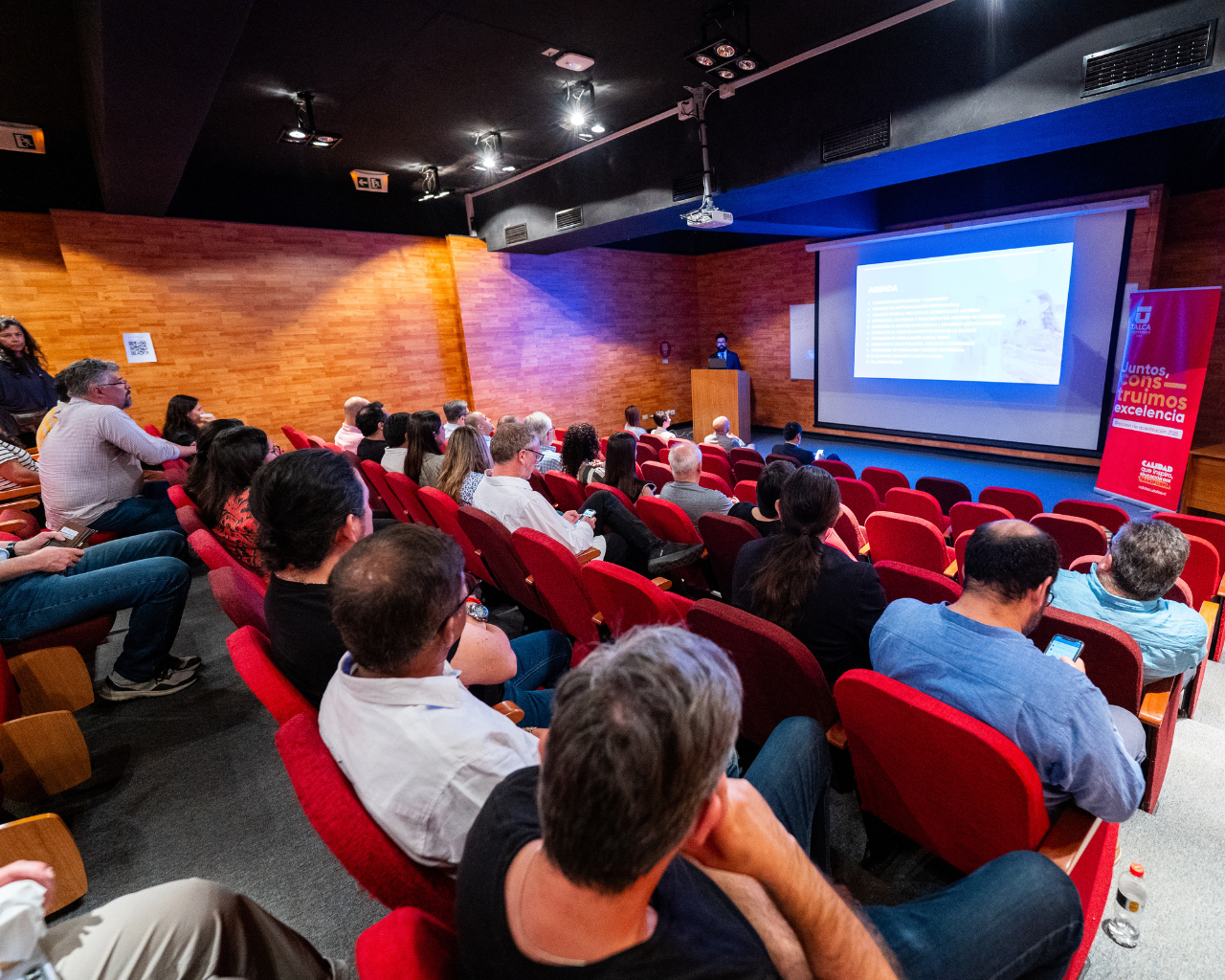 Durante la actividad se hizo un recorrido detallado por los seis pilares que evalúa la Comisión Nacional de Acreditación (CNA). El bloque inicial estuvo marcado por la exposición de la vicerrectora de Formación, Paula Manríquez Novoa, sobre Docencia y Resultados, seguida por el vicerrector de Gestión Económica y Administración, Luis Urra Monsalve, quien analizó la Estrategia y Recursos Institucionales.