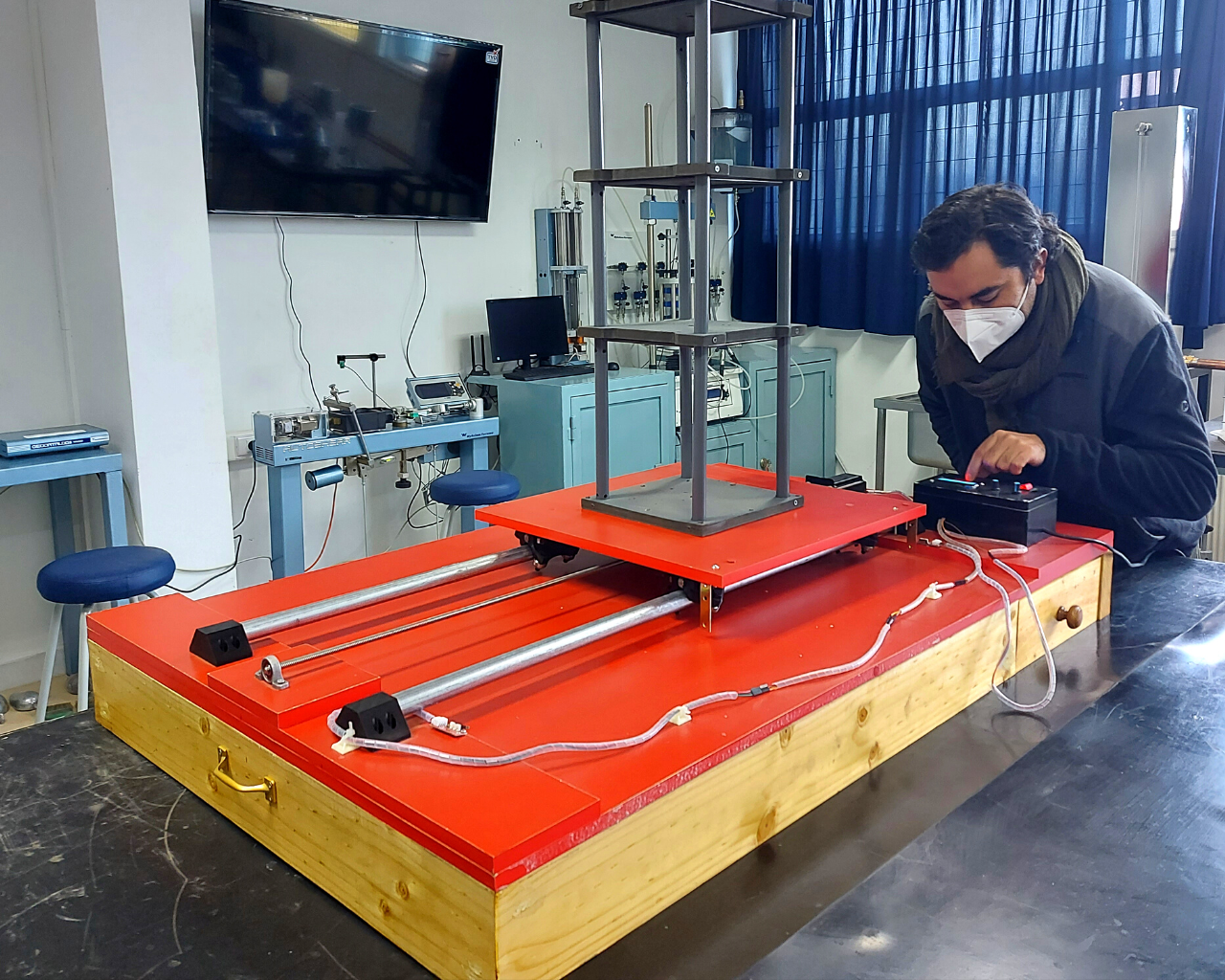 De acuerdo al académico, que supervisó el diseño, construcción y validación de la plataforma, “el desafío fue construir una máquina cuyo fin es el de generar movimiento oscilatorio, sobre la cual se puede colocar algún elemento para estudiar su comportamiento estructural frente a sismos de diferente magnitud”.