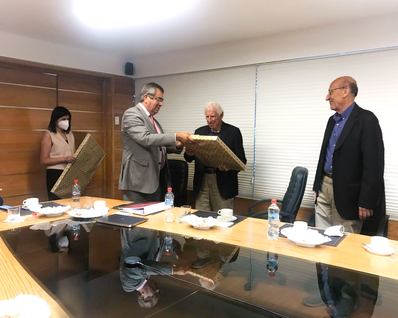 Ambos directivos, representantes externos elegidos por el Consejo Académico, recibieron en manos del rector Álvaro Rojas, un grabado del pintor Nemesio Antúnez como muestra de agradecimiento por parte de la Institución.